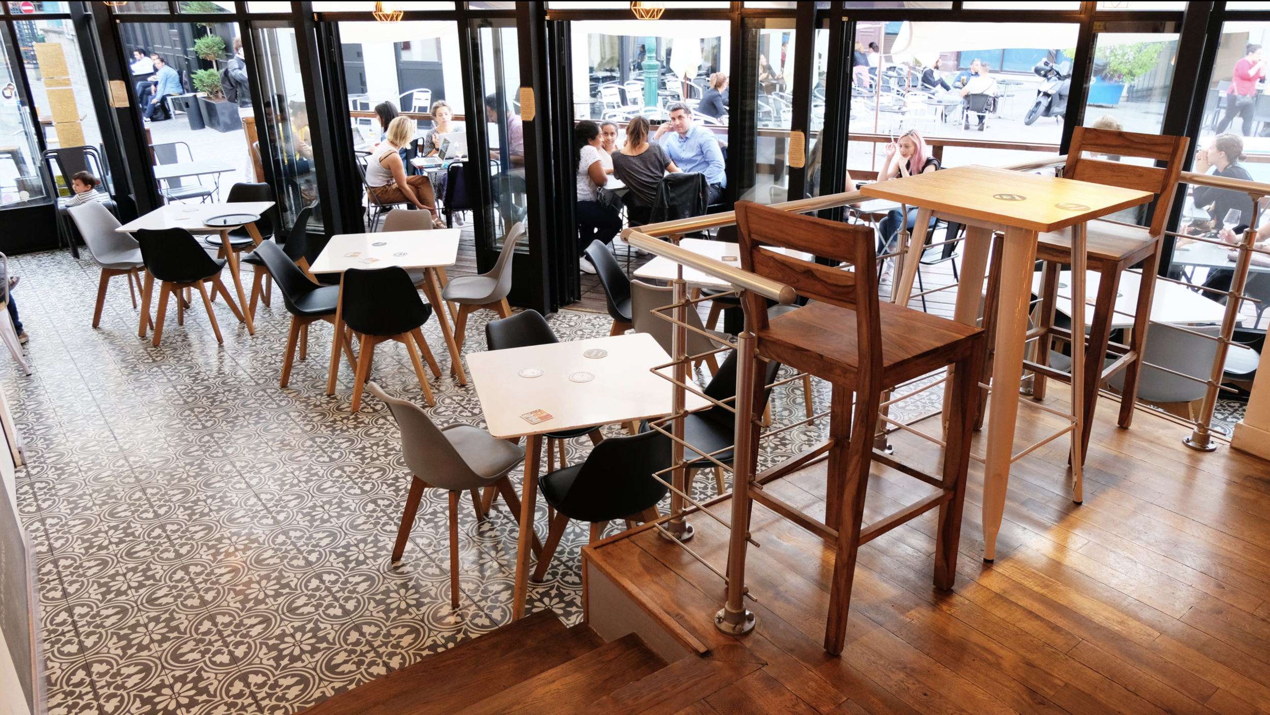 This small bar and restaurant serves selections from local Paris breweries and rare imports with American-style bar fare. The design is organized around rich natural wood surfaces, warm lighting, and minimal neutral background materials. The materials reflect the singular focus on the craft of the brew and allowing the flavor experience to stand for itself.